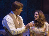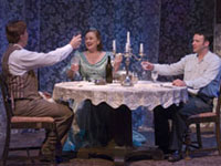 Deborah Gilmour Smyth is magnificent as the dominant and domineering Amanda, a study in multi-layered contrasts. Sarah Zimmerman's Laura is as delicate and fragile as her beloved glass collection. Jason Heil is pitch-perfect as the affable Jim. Sean Cox is excellent as Tom, who frames the play as misty memory. Mike Buckley's lacy, ethereal set, Nathan Peirson's golden lighting, and Jeanne Reith's charming 1930s costumes flawlessly set the stage, and the musical underscoring, marvelously played by Rik Ogden, heightens the tone of lyrical reminiscence." |
