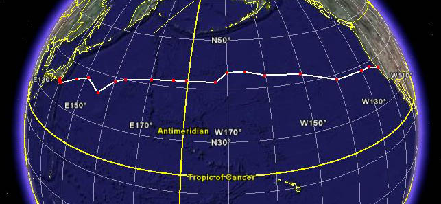 うと北緯43度あたりまで北上し、サンフランシスコを目指した