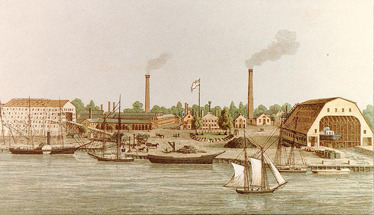 ハンプトン・ローズで軍艦・ローノーク号から川蒸気に乗り換え、チェサピーク湾からポトマック川を遡りワシントンDCの南側、ポトマック川の支流・アナコスシャ川に面した海軍造船所に着いた。副使・村垣淡路守の閏3月25日の日記によれば、
