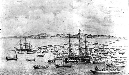 1846(弘化3)年、浦賀にやって来た東インド艦隊司令官ビドル提督も、その指令書の内容により、いわゆる「微笑外交」となり、鎖国中の幕府からは通商を拒否された。