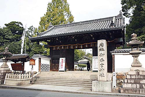 京都市伏見区御香宮門前町にある御香宮神社(左)と西奉行町にある伏見奉行所跡の碑