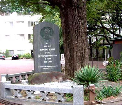 東京都港区元麻布1丁目のアメリカ公使館を置いた善福寺の本堂と境内のタウンゼント・ハリス記念碑