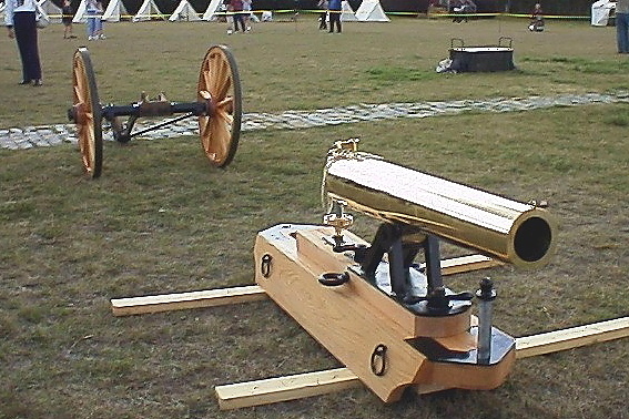 これはペリー提督も参戦した米墨戦争当時に軍艦から行った上陸戦で、上陸する兵士を援護する使い勝手の良い軽量なボート砲やそのまま更に深く進攻出来る野戦砲が無かった経験を活かし、陸軍野戦砲として使われていたホウィッツァー砲をボート上にでも車付き台車上にでも簡単に着装できる様に、1849年、当時のダールグレン海軍大尉(後に海軍少将)が改良した物だったと言う。上の写真からも分かるが、この海軍仕様の砲身には通常付ける「砲耳」が無い。