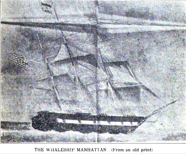 1843年11月8日サグ・ハーバーを出航したマンハッタン号は南米の先端のケープ・ホーンを回り太平洋に出て、1年以上も鯨を追いかけた後、1845年2月12日に小笠原群島の父島に到着した。ここで1ヵ月かけ船の修理をし、薪や水、野菜や豚を補給した(筆者注:当時アメリカでは、小笠原群島をボニン諸島、父島をピール島と呼び、二見港はポート・ロイドと呼んだ。後の1853年ペリー提督がここに石炭置き場を購入した)。3月12日に父島を出航後、塩漬け肉しか食べていない船員のために新鮮なウミガメの肉を手に入れようと、八丈島の南南東に約300km、父島の北北西に約420kmの太平洋の真中にある伊豆諸島の鳥島(筆者注:当時アメリカでは、セント・ピーターズ島と呼んだ)に立ち寄った。現在この鳥島全体が天然記念物に指定され許可なしに立ち入ることは出来ないが、周囲7kmほどの火山島は当時も無人島だった。