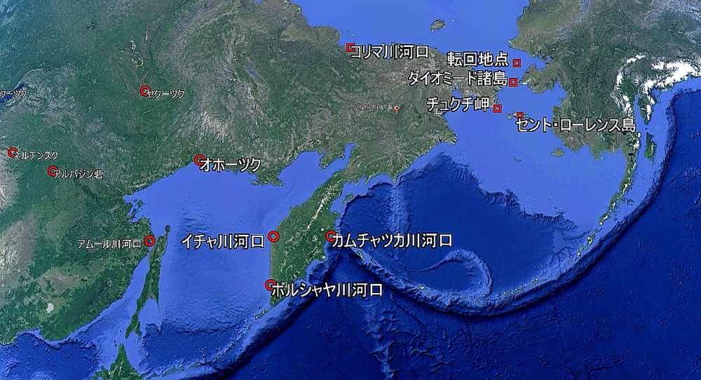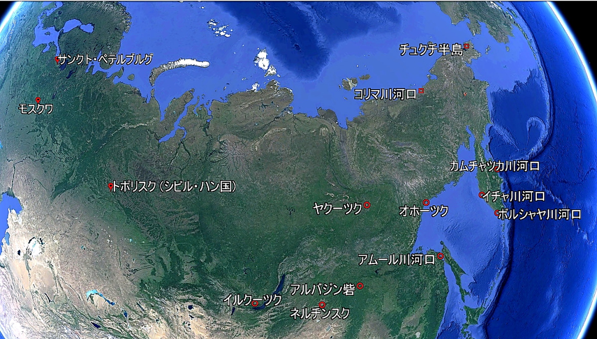 ヤクーツク、オホーツク、チュクチ半島、カムチャツカ半島