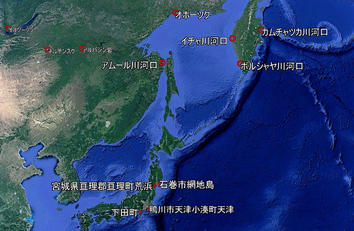 オホーツク、ボルシャヤ川河口、カムチャツカ川河口、